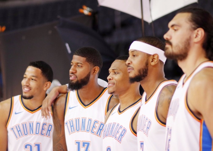 งานพบปะสื่อมวลชนก่อนฤดูกาล 2017/18 ของทีมบาสเกตบอล โอกลาโฮม่า ซิตี้ ธันเดอร์ส คึกคักอย่างที่ไม่เคยเป็นมาหลายปี เนื่องเพราะซีซั่นนี้พวกเขามี 'บิ๊ก 3' ให้เชิดหน้าชูตา