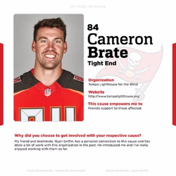 ยกตัวอย่างของ คาเมร่อน เบร้ต ปีกในของ แทมปา เบย์ บัคคาเนียร์ส รายนี้สนับสนุนโครงการเพื่อคนตาบอดในชุมชม แทมปา