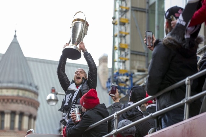 กลับมาที่ขบวนรถบัสฉลองแชมป์ พวกเขาเคลื่อนพลจากหน้าสนามแอร์ แคนาดา เซนเตอร์ ซึ่งตลอดระยะทาง 1.3 กิโลเมตร ก็มีเสียงตะโกนหนุนทีม 'ทีเอฟซี', 'ทีเอฟซี', 'ทีเอฟซี' ไปแบบไม่มีเงียบเสียง