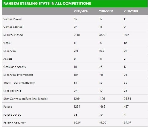 เลรอย ซาเน่ ยิงรวมทุกถ้วยไปแล้ว 8 ประตู และผู้นำดาวยิงของทีมเวลานี้ ราฮีม สเตอร์ลิง ที่ยิงรวมทุกถ้วยไปแล้ว 10 ประตู