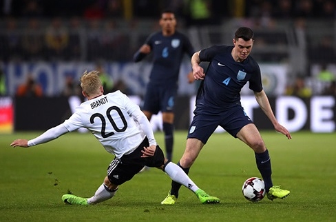 แม้ไม่ได้เล่นกับสโมสร แต่ เซาธ์เกต ยังลอง ลุค ชอว์ ในเกมที่ เยอรมนี