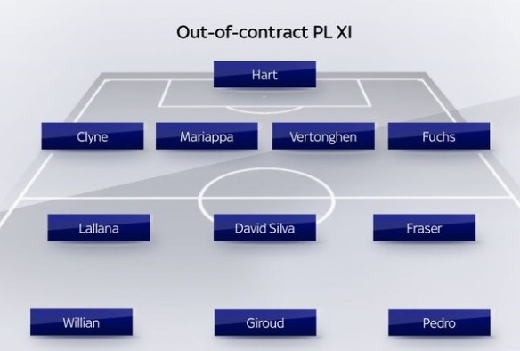 เราสามารถเลือกนักเตะที่กำลังจะหมดสัญญากับทีมพรีเมียร์ลีกมาจัดเป็นทีมสิบเอ็ดคนได้เลย โดยข้อมูลของนักเตะที่เหลือสัญญาอีกราวๆ 4 เดือนครึ่ง หรือสิ้นสุดเดือนมิถุนายน อ้างอิงตามข้อมูลจากเว็บไซต์ transfermarkt.co.uk