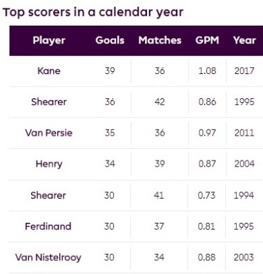 แต่ก่อนจะไปถึงจุดนั้น เคน เพิ่งปิดฉากปี 2017 ด้วยประตูที่ 39 ในพรีเมียร์ลีก ทำลายสถิติดาวยิงสูงสุดใน 1 ปี (ตามปฏิทิน) ที่ อลัน เชียเรอร์ ตำนานดาวยิงของ แบล็คเบิร์น โรเวอร์ส และ นิวคาสเซิ่ล ยูไนเต็ด ที่เคยทำเอาไว้ 36 ประตู ในปี 1995