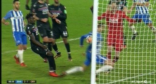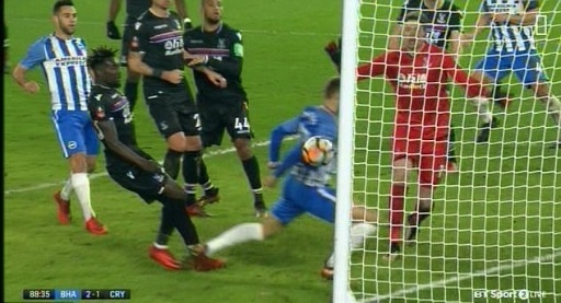 เกมที่ เอเม็กซ์ สเตเดี้ยม คู่สุดท้ายของ เอฟเอ คัพ รอบ 3 ซึ่งเป็นเกมมันเดย์ไนท์ ระหว่าง ไบรท์ตัน แอนด์ โฮฟ อัลเบียน กับ คริสตัล พาเลซ สมาคมฟุตบอลอังกฤษ เลือกประเดิม 'Video Assistant Referee' หรือ 'วีเออาร์' ในเกมสำคัญครั้งแรก โดยมี อันเดร มาร์ริเนอร์ รับบทผู้ตัดสินในสนาม และ นีล สวาร์บริค เป็นผู้ช่วยที่เฝ้าหน้าจอโทรทัศน์อยู่ที่สตูดิโอของพรีเมียร์ลีกในลอนดอน