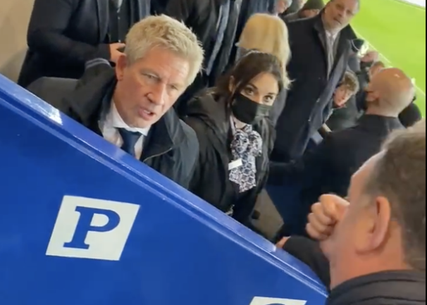 บนอัฒจันทร์ นอกจากเสียงตะโกนขับไล่ดังอื้ออึงแล้ว ยังมีแฟนบอลบางรายปะทะคารมกับ บรันด์ส ระหว่างเดินผ่าน