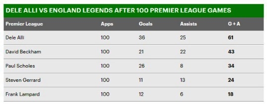 จากเกมที่ สแตมฟอร์ด บริดจ์ เมื่อวันอาทิตย์ที่ผ่านมา มีความพิเศษนอกจากจะเป็นลอนดอนดาร์บี้แมตช์แล้ว ยังเป็นการลงสนามนัดที่ 100 ในพรีเมียร์ลีกของ อัลลี ที่ถึงนาทีนี้เพิ่งอายุเพียง 21 ปีเท่านั้น