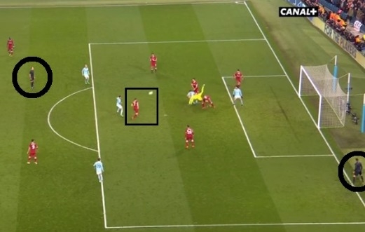 เมื่อดูจากภาพรีเพลย์แวบแรก ก็ไม่ได้ติดใจอะไร เพราะเป็นจังหวะยืนเหลื่อมจริงๆ เนื่องจาก โลริส คาริอุส ออกมาชกบอล แต่พอดูอีกแวบ ถึงได้เห็นว่า บอลที่แอสซิสต์ให้ ซาเน่ มาจาก เจมส์ มิลเนอร์