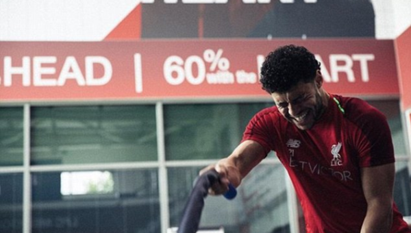 อเล็กซ์ อ็อกซ์เลด-แชมเบอร์เลน ขวัญใจห้องแต่งตัว 'หงส์แดง' กำลังอยู่ระหว่างฟื้นฟูหลังผ่าตัดเอ็นเข่าภายในยิม ที่ ลอส แอนเจลิส รัฐแคลิฟอร์เนีย ประเทศสหรัฐฯ