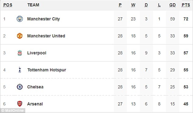 พวกเขาจึงสามารถถนอมผู้เล่นชุดเก่งไว้รอบดใน ยูฟ่า ชปล. รอบ 16 ทีม นัดสอง กับ เซบีย่า ได้เต็มที่เนื่องจากช่องว่างห่างจากอันดับ#5 อยู่ถึงหกคะแนน