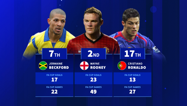 ดาวยิงลำดับสามก็อดีตกองหน้าทีมชาติอังกฤษ เจอร์เมน เดโฟ 22 ลูก เอฟเอ คัพ จาก 39. เกม