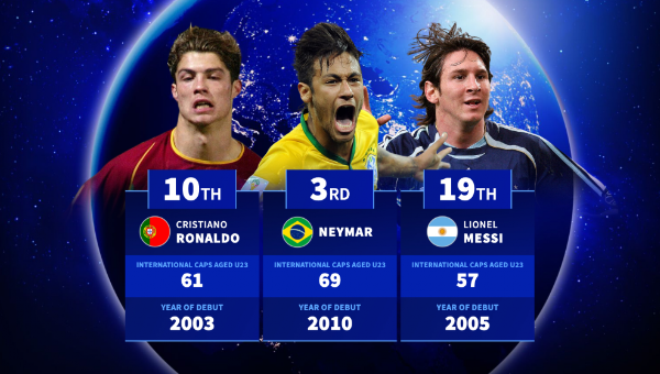 ที่ผ่านๆมาตัวอย่างผู้เล่นอายุน้อยต่ำกว่า 24 ปีที่สร้างอิทธิพลในทีมชาติตัวเองมากมายลองไปดูใครเด่นๆบ้าง