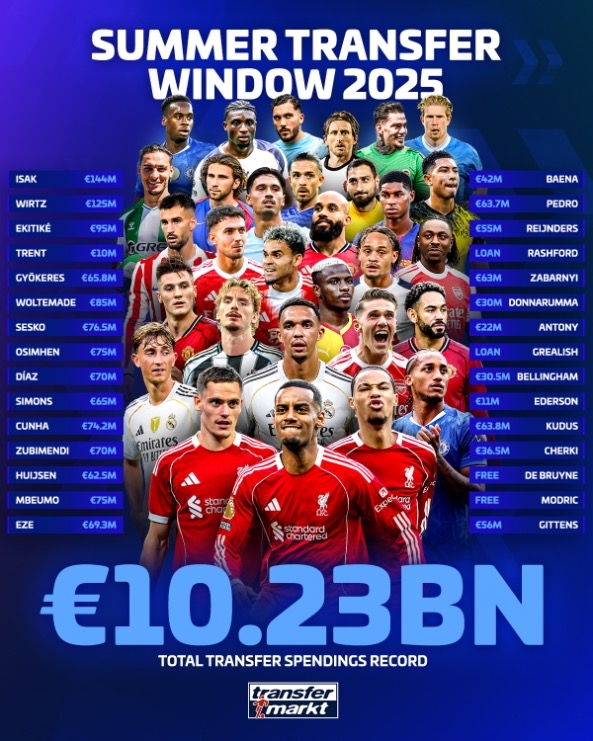 ภาพรวมตลาดซัมเมอร์ 2025 ของยุโรปถือว่าบ้าคลั่ง มีการเสริมทัพกันสนุกรวมกว่า 10,230 ล้านยูโร