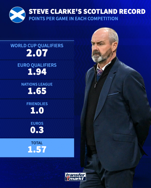 ซึ่งจากค่าเฉลี่ยรอบคัดเลือกทุกรายการ คล้าร์ก ทำไว้ 1.86 แต้ม-ต่อ-เกม มากสุดในรอบหลายปีเทียบกับบรรดาอดีตผจก.ทีมคนอื่นๆ