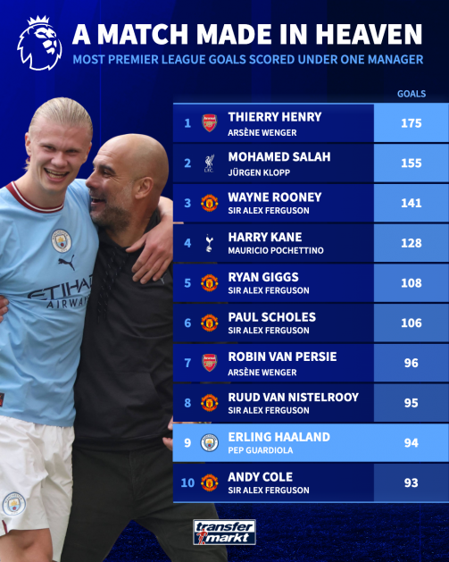 แม้ว่าเขาจะยังไม่สามารถทำลายสถิติดังกล่าวได้ตั้งแต่นั้นมา แต่จำนวนประตูก็ยังคงไหลมาเทมาอย่างต่อเนื่อง และสถิติพรีเมียร์ ลีก ที่ ฮาแลนด์ สร้างไว้ภายใต้การคุมทีมของ กวาร์ดิโอล่า นั้นก็น่าเหลือเชื่อ