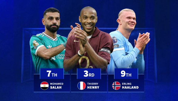 อันดับสามคือ อองรี อดีตศูนย์หน้าระดับตำนานของ อาร์เซน่อล