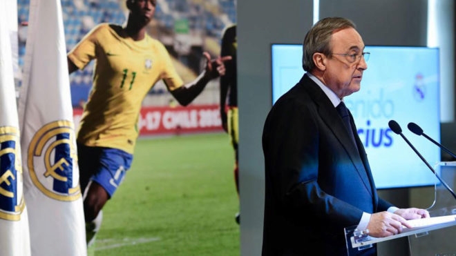 ขณะที่สาวกมาดริดิสต้ากำลังเฝ้ารอ'ไอดอล'คนใหม่ของพวกเขา ฟลอเรนติโน่คั่นอารมณ์ด้วยการเปิดตัว วินิชุส จูเนียร์ กองหน้าดาวโรจน์ชาวบราซิเลียนวัย 18 กะรัตที่ย้ายมาจาก ฟลาเมงโก้ ซึ่งทีมชุดขาวเป็นเจ้าของตั้งแต่ช่วงเดือนพฤษภาคมปีก่อนหลังจ่ายเงิน 45 ล้านยูโรให้ต้นสังกัดนักเตะ