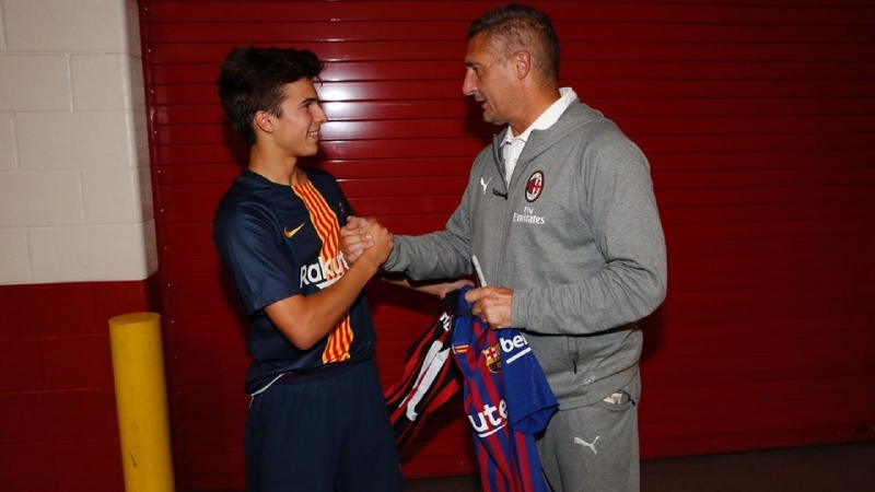 แข้งดาวรุ่งวัย 18 ปีของ บาร์เซโลน่า ยังมีโอกาสพบปะพูดคุยและแลกเสื้อกับ มาสซาโร่ อดีตกองหน้าคนดังของ มิลาน หลังเกมที่ทั้งสองทีมลงดวลกันในศึก'ไอซีซี คัพ'บนสังเวียน'ลีวายส์ สเตเดี้ยม'ด้วย