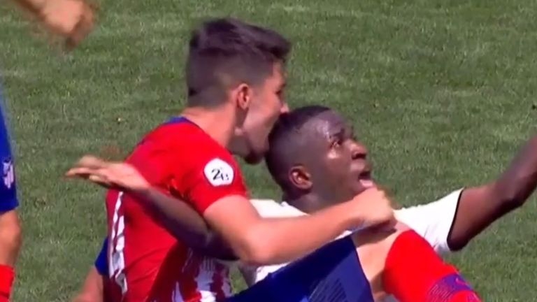 วินิซุส จูเนียร์ มีปัญหากระทบกระทั่งกับนักเตะฝั่งตรงข้ามจนถูก ตาชี่ โรดริเกซ กองหลังกัปตันทีมของ แอตเลติโก มาดริด เบ ตัดเกมด้วยการทำฟาวล์ก่อนทำท่าจะงับศรีษะของดาวโรจน์วัย 18 ปีระหว่างที่สองคู่ล้มลงไปกองบนพื้นสนาม โดย ตาชี่ ถูกตักเตือนจากผู้ตัดสินด้วยใบเหลืองเท่านั้น ขณะที่ดาวเตะชาวบราซิเลียนก็รับใบเหลืองเป็นของกำนัลด้วยเช่นกันจากการประท้วงไม่เห็นด้วยกับคำตัดสินของเชิ้ตดำ