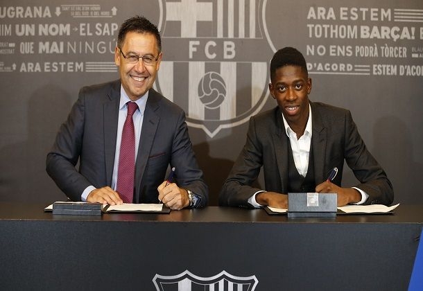 บาร์โตเมวชี้แจงข้อสงสัยเรื่องค่าตัวของกองหน้าชาวฝรั่งเศสว่า'เราขอขอบคุณอุสมาน สำหรับการตอบรับข้อเสนอจากบาร์ซ่า เราจับมองมองเขามาตลอดฤดูกาลที่ผ่านมา เราได้ติดต่อกับต้นสังกัดเขาและเราบรรลุข้อตกลงจำนวน 105 ล้านยูโรและอีก 40 ล้านยูโรตามข้อตกลงเพิ่มเติม'