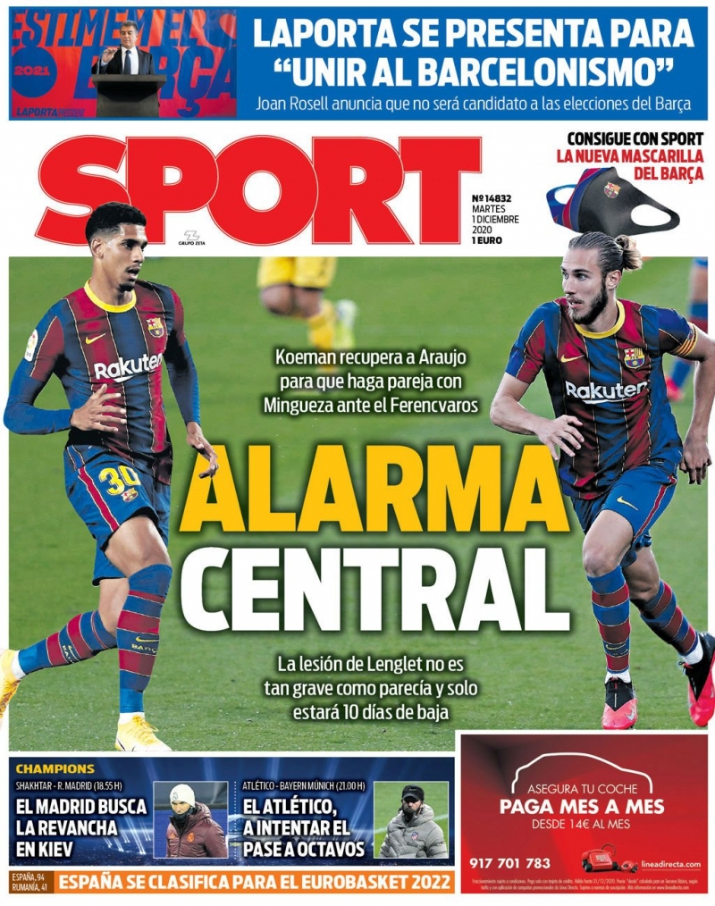 ล่าสุด เกลม็องต์ ล็องเล่ต์ เซนเตอร์ทีมชาติฝรั่งเศสบาดเจ็บข้อเท้า ก่อนถูกเปลี่ยนตัวออกจากเกมชนะ โอซาซูน่า 4-0 เมื่อวันอาทิตย์ที่ผ่านมา แม้ คูมัน จะยืนยันว่าอาการบาดเจ็บของกองหลังวัย 25 ปีไม่รุนแรง แต่เทรนเนอร์ชาวดัตช์เลือกพักใช้งาน ล็องเล่ต์ สำหรับเกมเยือน เฟเรนซ์วารอส บนเวทีแชมเปี้ยนส์ ลีก รอบแบ่งกลุ่ม วันพุธนี้