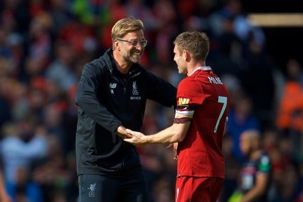 ตรงกลางปรับ เจมส์ มิลเนอร์ ลงแทน จอร์แดน เฮนเดอร์สัน ขณะที่เกมรุกยังใช้ โมฮาเหม็ด ซาลาห์, โรแบร์โต้ ฟีร์มีโน่ และ ฟิลิปเป้ คูตินโญ่ เหมือนเดิม