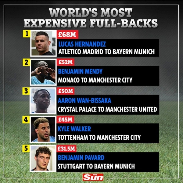 เป๊ป กวาร์ดิโอล่า ลงทุนไปแล้วนับร้อยล้านกับแผงแนวรับ ซึ่งรวมทั้ง ไคล์ วอล์คเกอร์, แบ็งฌาแม็ง เมนดี้ และ เอมเมอริก ลาปอร์กต์ ด้วย