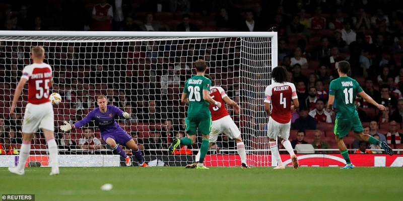 โอบาเมย็อง ได้ปั่นโค้งกระแทกเสา ขณะที่ มคิทาร์ยาน ก็กดเต็มข้อด้วยขวาทำเอานายทวารทีมเยือนต้องผวาปัดข้ามคาน