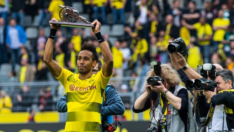 ปี 2013 โบรุสเซีย ดอร์ทมุนด์ ผิดหวังได้เพียงรองแชมป์ยูฟ่า แชเมปี้ยนส์ ลีก เมื่อพ่ายต่อคู่ปรับสำคัญอย่างบาเยิร์น มิวนิค ผู้บริหารของ "เสือเหลือง" จึงตัดสินใจดึงตัว โอบาเมย็อง ไปร่วมทีมด้วยสัญญา 5 ปี เพื่อเป็นความหวังในแนวรุกคนใหม่แทนที่ โรเบิร์ต เลวานดอฟสกี้ ที่ "เสือใต้" ตามไล่ล่าตัวอย่างหนัก