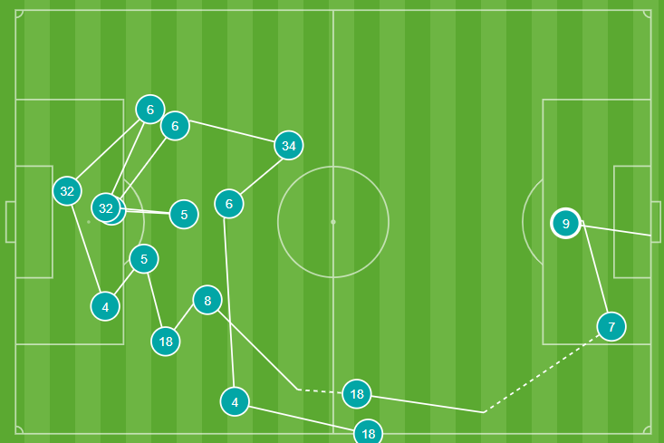ประตูแรกมาจากการแก้เพรสซิ่งก่อนจบที่ยิงประตู