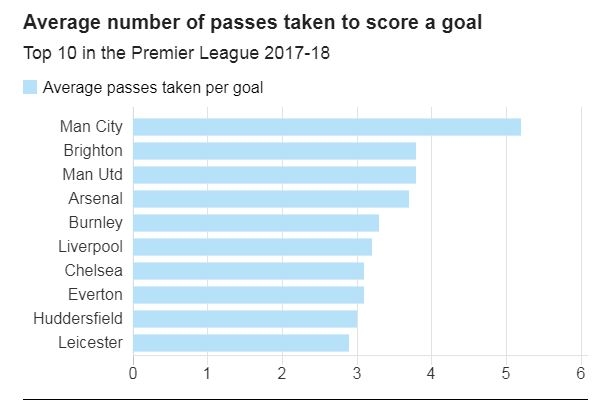 แมนฯ ซิตี้ ผ่านบอลเฉลี่ย 5.2 ครั้งต่อ 1 ประตูที่ทำได้