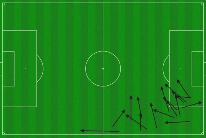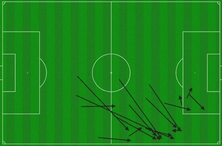 ทั้งคู่จ่ายบอลให้กัน 36 ครั้ง โดยที่ต่างฝ่ายต่างจ่ายให้กันเท่ากันที่ 18 ครั้ง และนอกจากเป็นจุดเริ่มต้นของประตูแรกแล้ว ยังทลายเกมรับของ ฟอเรสต์ ได้ต่อเนื่อง