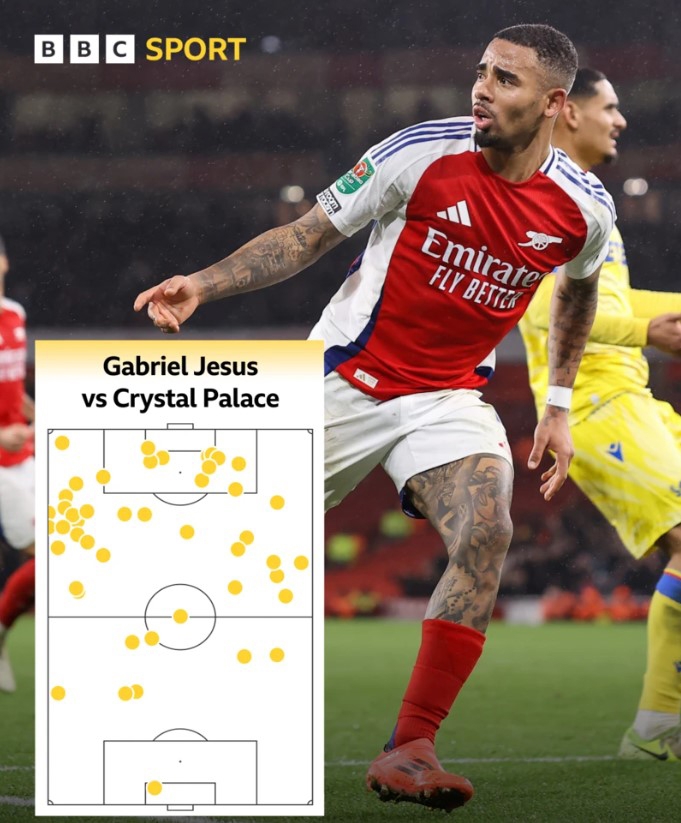 กาเบรียล เชซุส ทำได้จากโอกาสยิง 5 ครั้ง เข้ากรอบทั้ง 5 ครั้ง และเป็น 3 ประตูที่พาทีมขยับใกล้โอกาสลุ้นแชมป์แรกของฤดูกาล