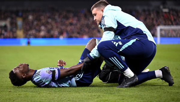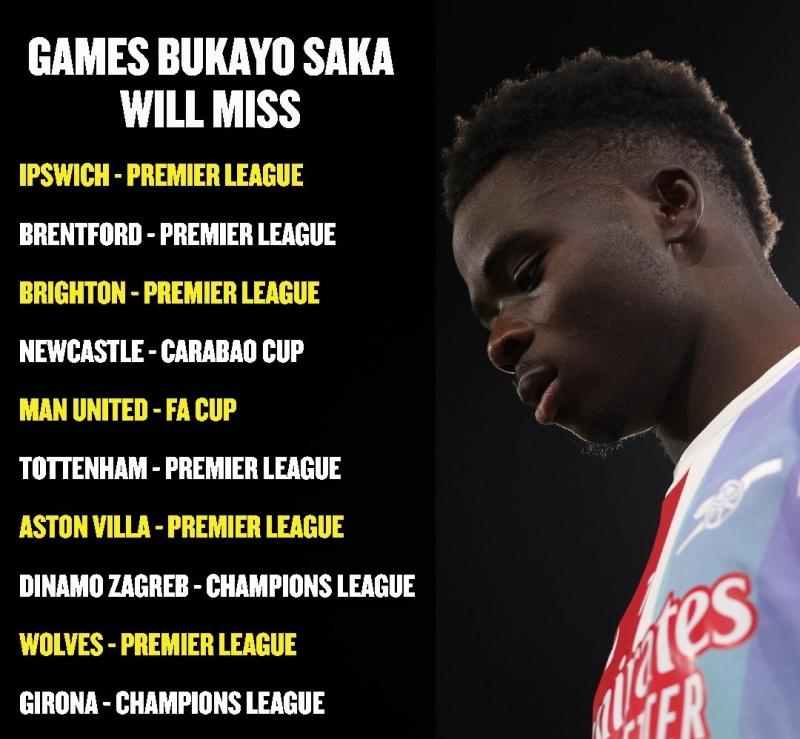 ซาก้า บาดเจ็บถูกเปลี่ยนตัวออกตั้งแต่กลางครึ่งแรก หลังได้รับบาดเจ็บบริเวณแฮมสตริงในจังหวะเปิดบอล ขณะที่ มิเกล อาร์เตต้า กุนซือปืนโตเปิดเผยในเวลาต่อมาว่าต้องพักหลายสัปดาห์