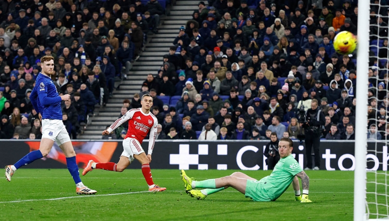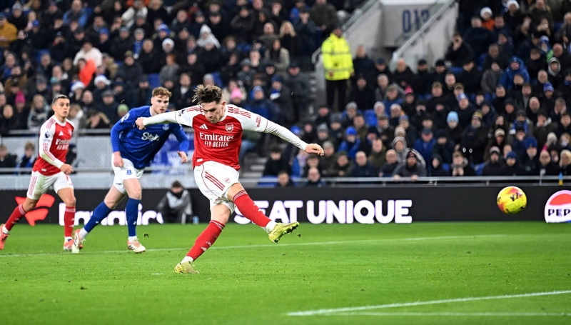 ตลอดครึ่งแรก อาร์เซน่อล มีโอกาสอยู่ฝ่ายเดียว แต่ก็ไม่ได้มากนัก และต้องพึ่งพาจุดโทษเพื่อประตูขึ้นนำซึ่งก็เป็นจุดโทษแบบที่ เอฟเวอร์ตัน แย้งไม่ได้เพราะ เจค โอโบรอัน จงใจใช้มือชัดเจนในการป้องกันลูกเตะมุมของ เดแคลน ไรซ์ ที่กำลังเข้าหัว คาลาฟิออรี่