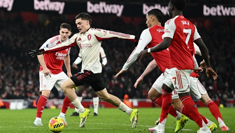 อาร์เซน่อล เริ่มต้นอย่างมีความหวังจากการที่ บูคาโย่ ซาก้า และ ยูร์เรียน ทิมเบอร์ ทำเกมรุกทางฝั่งขวาและสร้างโอกาสเข้าไปในพื้นที่อันตราย แต่กองหน้ากลับไม่อยู่ในตำแหน่งที่จะจบสกอร์ได้ จนเกมค่อยๆ หลุดลอยไป