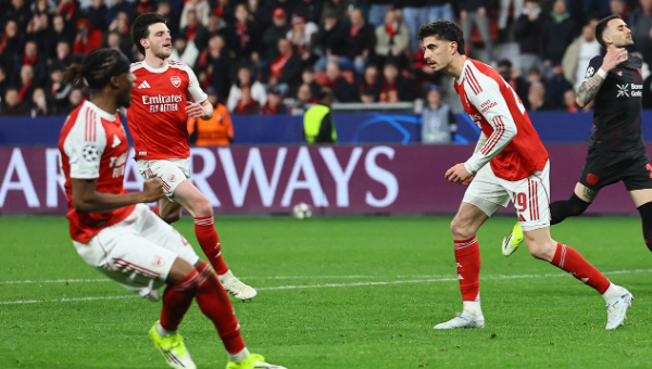 ขณะเดียวกัน ก็เริ่มต้นครึ่งหลังไม่เป็นไปตามคาดเมื่อโดน เลเวอร์คูเซ่น ทำประตูขึ้นนำจาก "เตะมุม" ที่เป็นอาวุธสำคัญของ อาร์เซน่อล แต่กลับโดนย้อนเกล็ดจาก โรเบิร์ต อันดริช ขึ้นโขกเสาไกลไร้คนประกบ