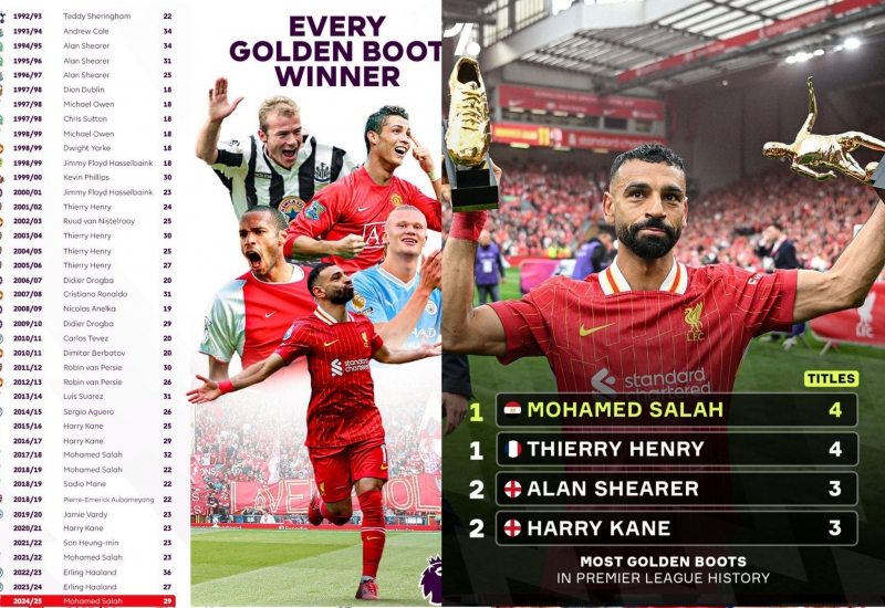 ดาวซัลโวสูงสุดพรีเมียร์ลีก 4 ครั้ง มากที่สุดร่วมกับ เธียร์รี่ อองรี