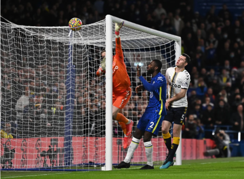 เชลซี เปิดฉากด้วยการบุกเข้าใส่อย่างที่เราได้เห็นกันมาตลอดฤดูกาล และทีมก็น่าได้ประตูขึ้นนำตั้งแต่ 6 นาทีแรกจังหวะที่ จอร์จินโญ่ จ่ายบอลทะลุช่องอย่างสวยให้ รีซ เจมส์ หลุดเข้าเขตโทษด้านขวาแต่จังหวะยิงพยายามหนีตัว จอร์แดน พิคฟอร์ด มากเกินไปสุดท้ายบอลไม่เข้ากรอบซะงั้น