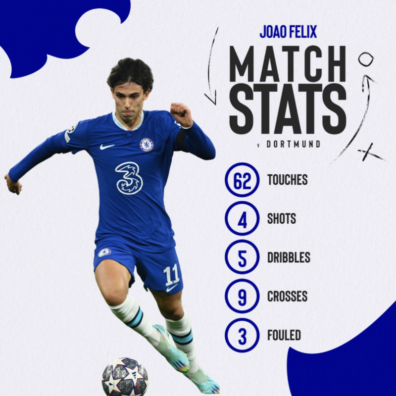 ทั้ง ฮาแวร์ตซ์ และ เฟลิกซ์ ยังได้โอกาสทำประตูมากถึงคนละ 4 ครั้ง น่าเสียดายที่มันไม่เป็นประตูเท่านั้น
