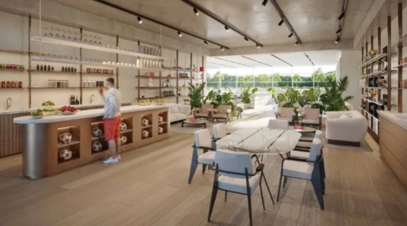ชั้นบนจะเป็นพื้นที่พักผ่อนหย่อนใจสำหรับนักเตะได้ผ่อนคลาย และยังสามารถใช้บริการตัดผมในร้านตัดผมที่ออกแบบมาเป็นพิเศษได้อีกด้วย