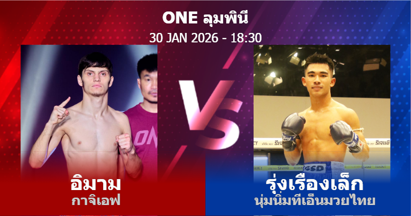 30/01/2026 18:30 ศึกวันแชมเปียนชิพลุมพินีมวยไทย รุ่นฟลายเวต อิมาม กาจิเอฟ รุ่งเรืองเล็ก นุ่มนิ่มทีเอ็นมวยไทย