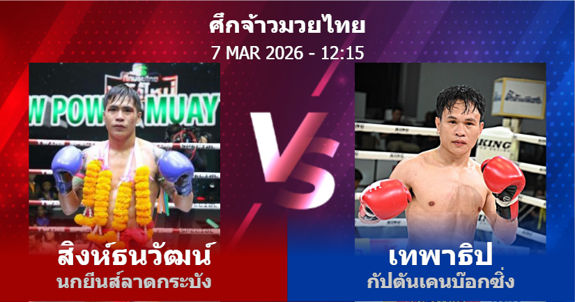 07/03/2026 12:20 ศึกจ้าวมวยไทย สิงห์ธนวัฒน์ นกยีนส์ลาดกระบัง เทพาธิป กัปตันเคนบ๊อกซิ่ง