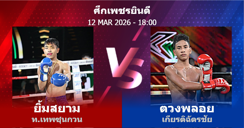 12/03/2026 18:00 ศึกเพชรยินดี ยิ้มสยาม ท.เทพซุนกวน ตวงพลอย เกียรติฉัตรชัย