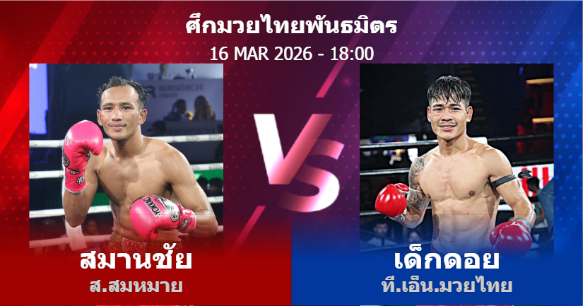 16/03/2026 18:00 ศึกมวยไทยพันธมิตร สมานชัย ส.สมหมาย เด็กดอย ที.เอ็น.มวยไทย