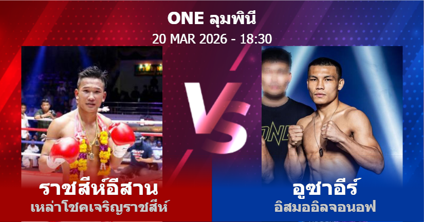 20/03/2026 18:30 ศึกวันแชมเปียนชิพลุมพินีมวยไทย รุ่นแบนตัมเวต ราชสีห์อีสาน เหล่าโชคเจริญราชสีห์ อูซาอีร์ อิสมออิลจอนอฟ
