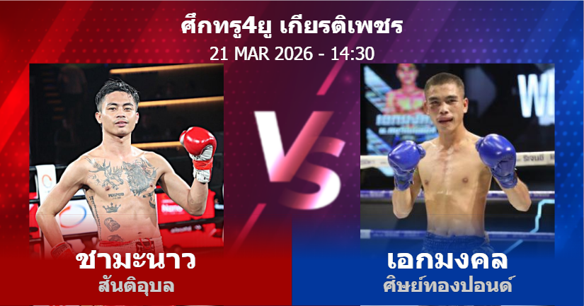 21/03/2026 14:30 ศึกมวยไทยเกียรติเพชร ชามะนาว สันติอุบล เอกมงคล ศิษย์ทองปอนด์