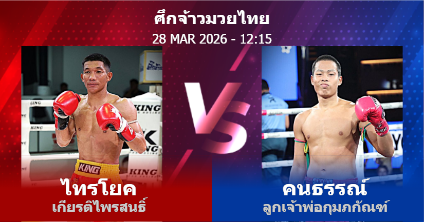 28/03/2026 12:15 ศึกจ้าวมวยไทย ไทรโยค เกียรติไพรสนธิ์ คนธรรณ์ ลูกเจ้าพ่อกุมภกัณฑ์