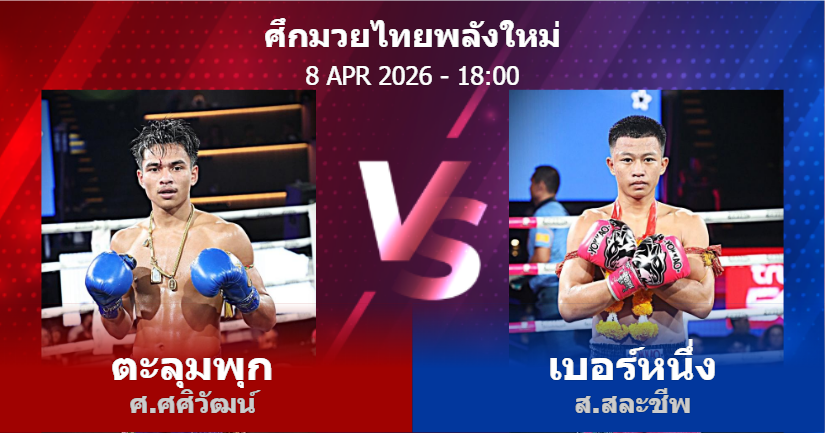 08/04/2026 18:00 ศึกมวยไทยพลังใหม่ ตะลุมพุก ศ.ศศิวัฒน์ เบอร์หนึ่ง ส.สละชีพ