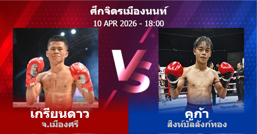 10/04/2026 18:00 ศึกจิตรเมืองนนท์ ช่วงที่ 2 เกรียนดาว จ.เมืองศรี คูก้า สิงห์บัลลังก์ทอง