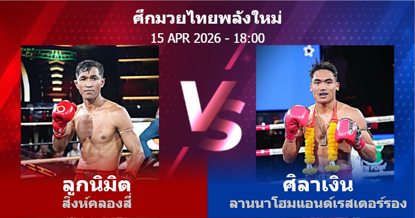 15/04/2026 18:00 ศึกมวยไทยพลังใหม่ ลูกนิมิต สิงห์คลองสี่ ศิลาเงิน ลานนาโฮมแอนด์เรสเตอร์รอง